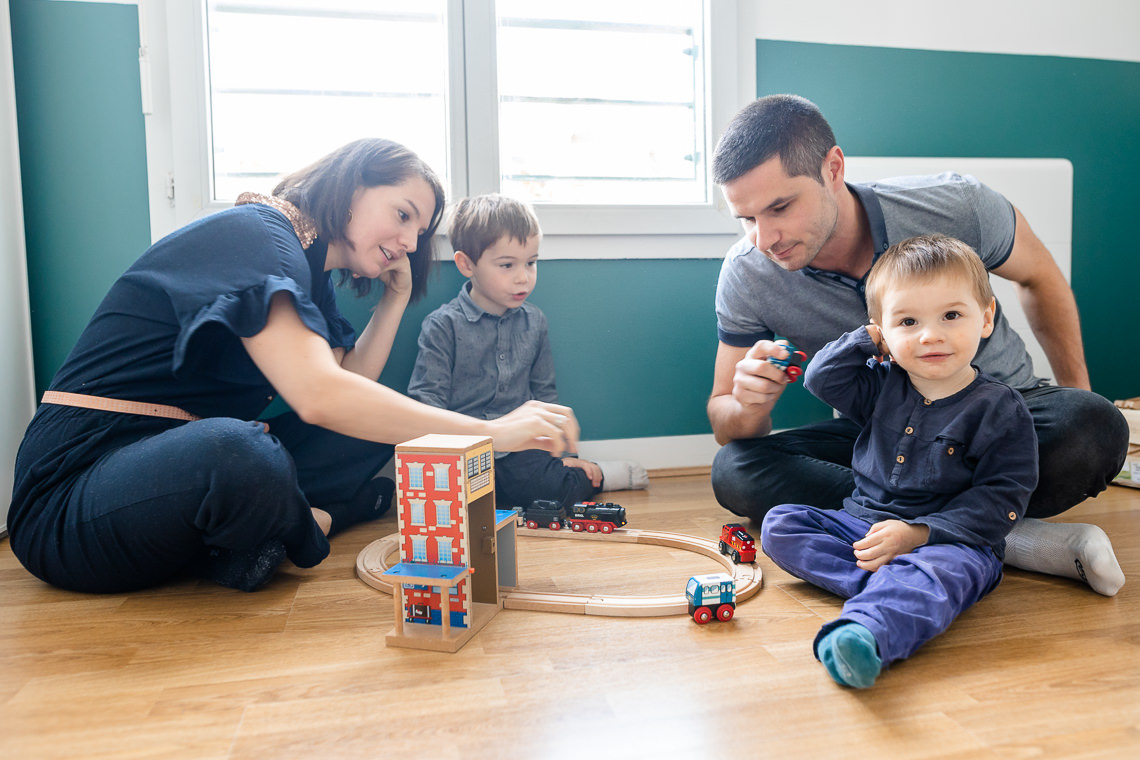 La clé d’un bon shooting photo en famille à domicile réside dans le choix des activités. Et oui, à leur âge, il n’est pas question de poser à proprement parler. On va leur proposer de jouer.