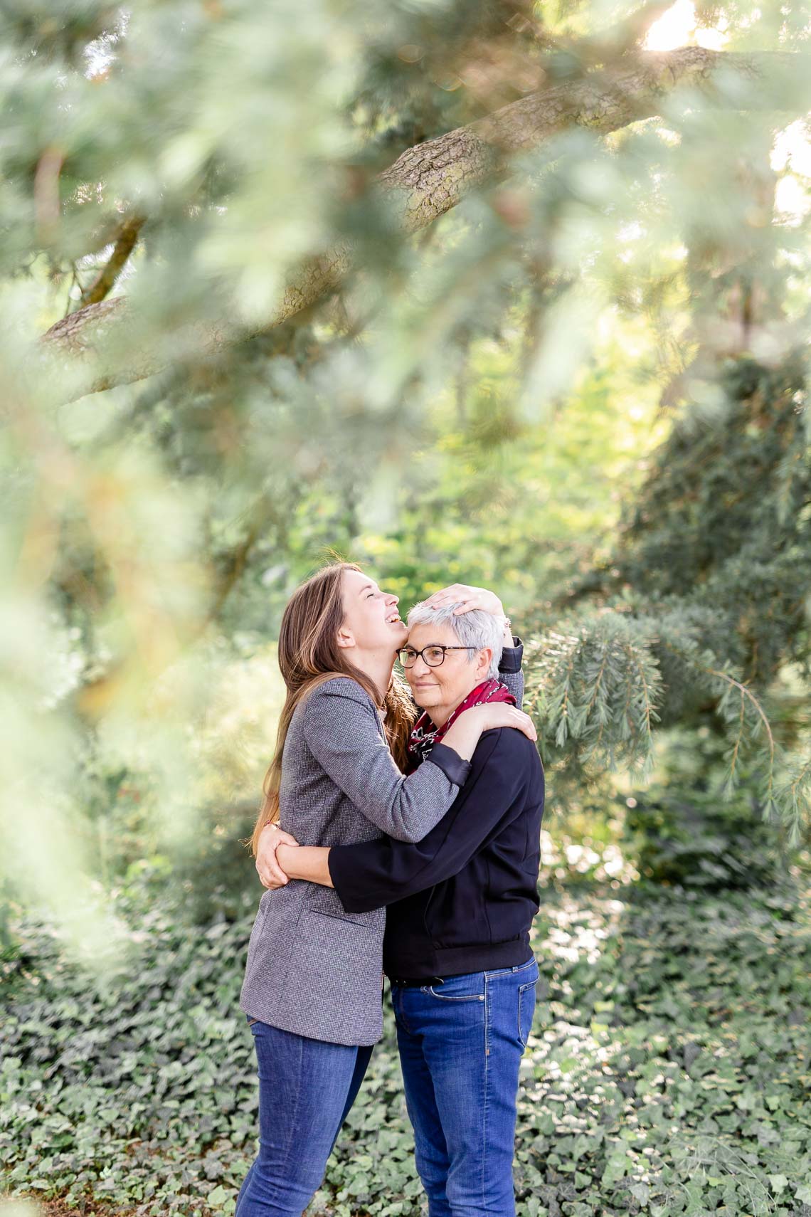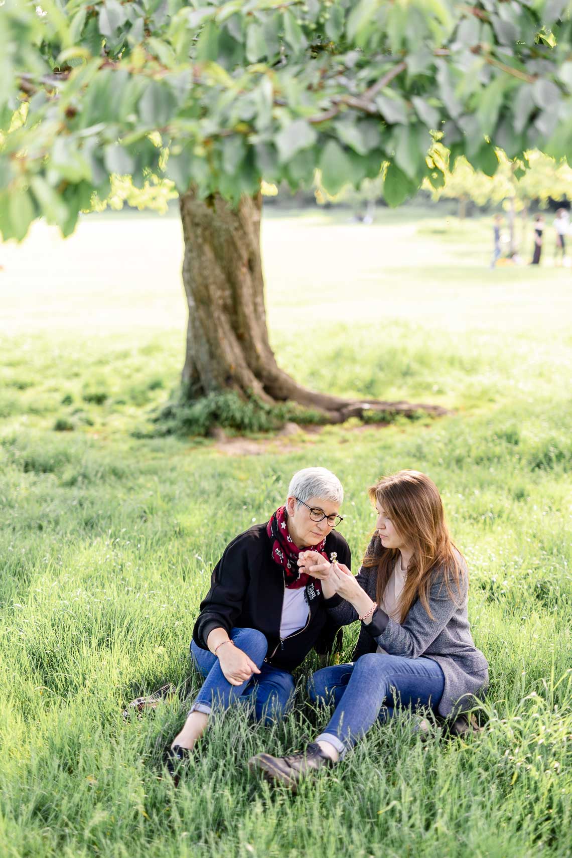 Pour finir, nous sommes allés près d’un parterre de fleurs où elles se sont pris bras dessus bras dessous. J’aime prendre en photo les personnes quand elles sont en train de parler. Cela donne un côté authentique. De plus, je me suis un peu cachée derrière un arbuste, rendant la scène encore plus naturelle. Elles ont agi comme si je n’étais pas là.