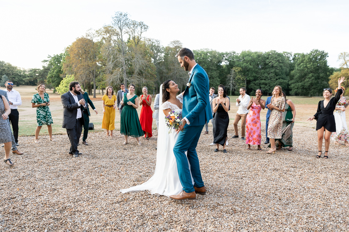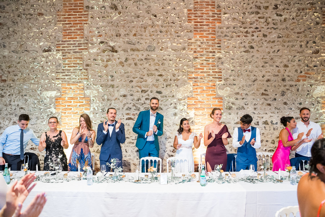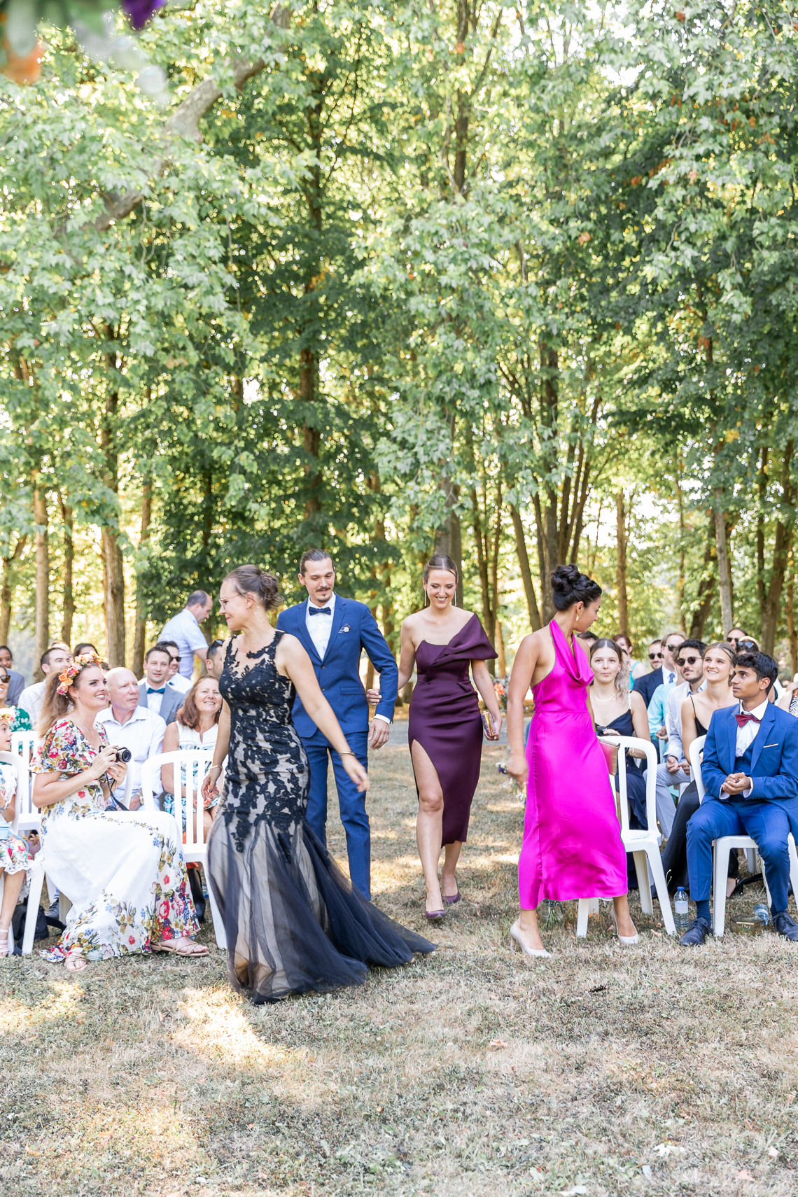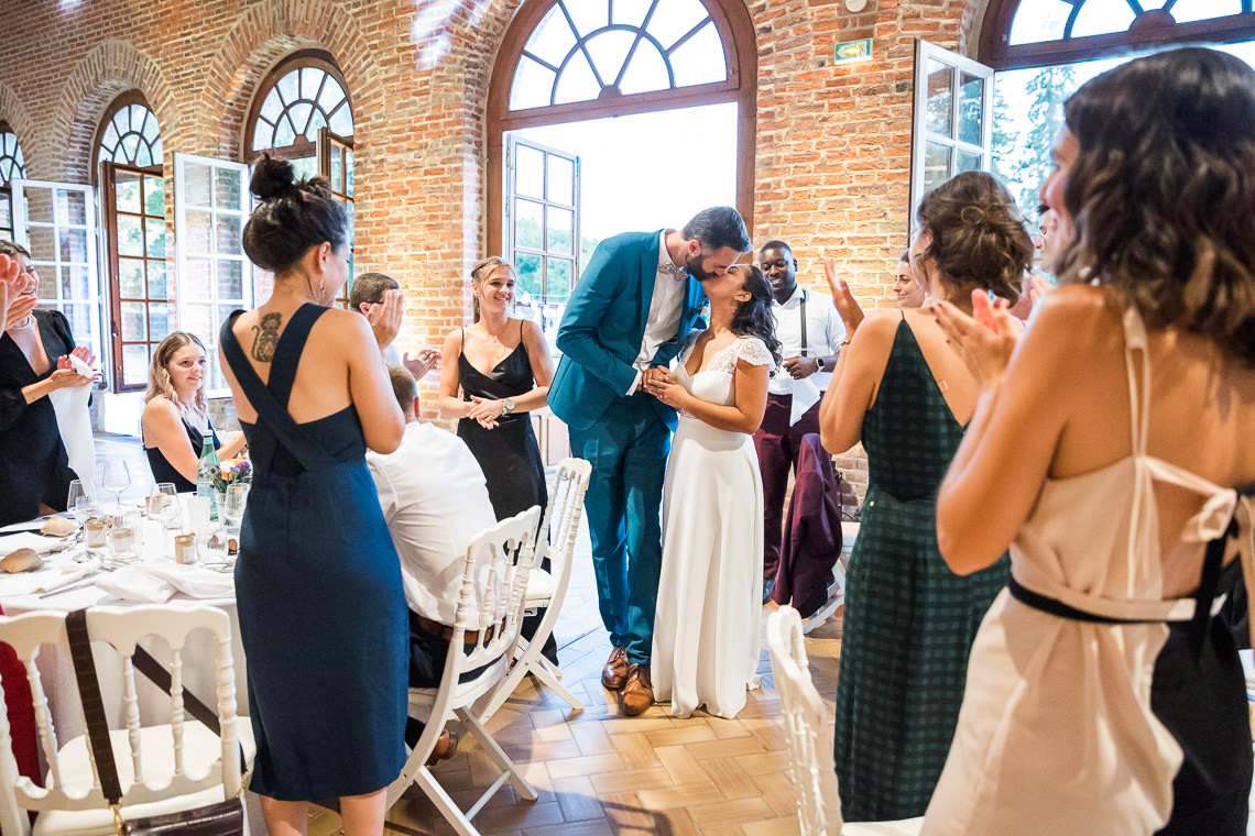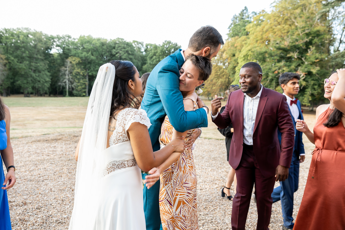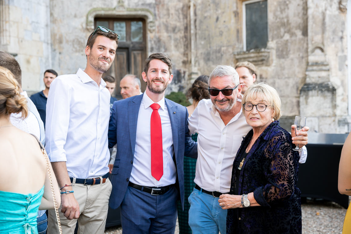 Après la cérémonie, les invités ont pu profiter d’un cocktail en extérieur, dans la cour du château. Les sourires, les rires et les éclats de voix ont animé cette belle journée de mariage.