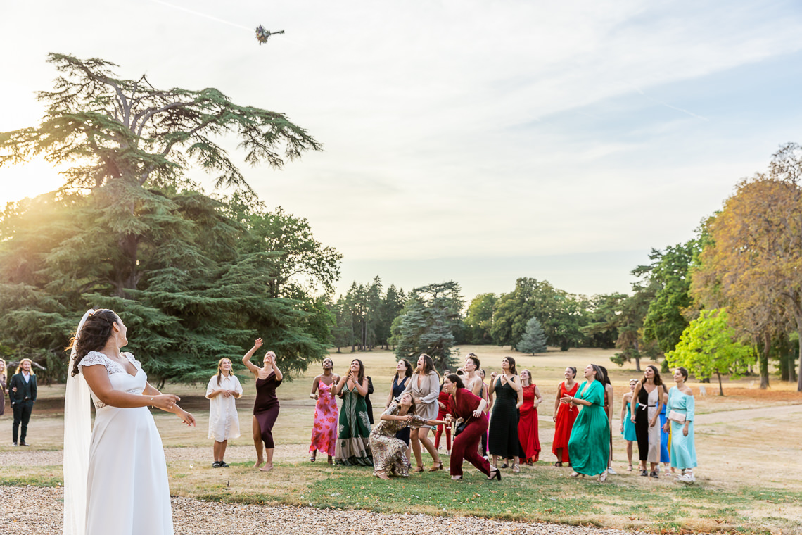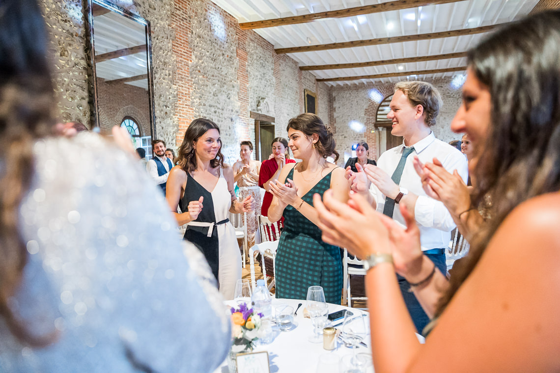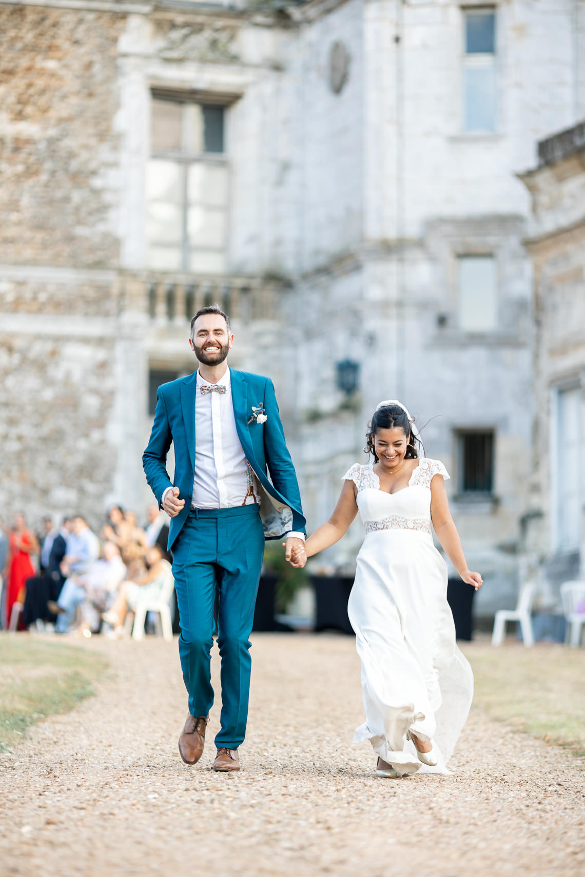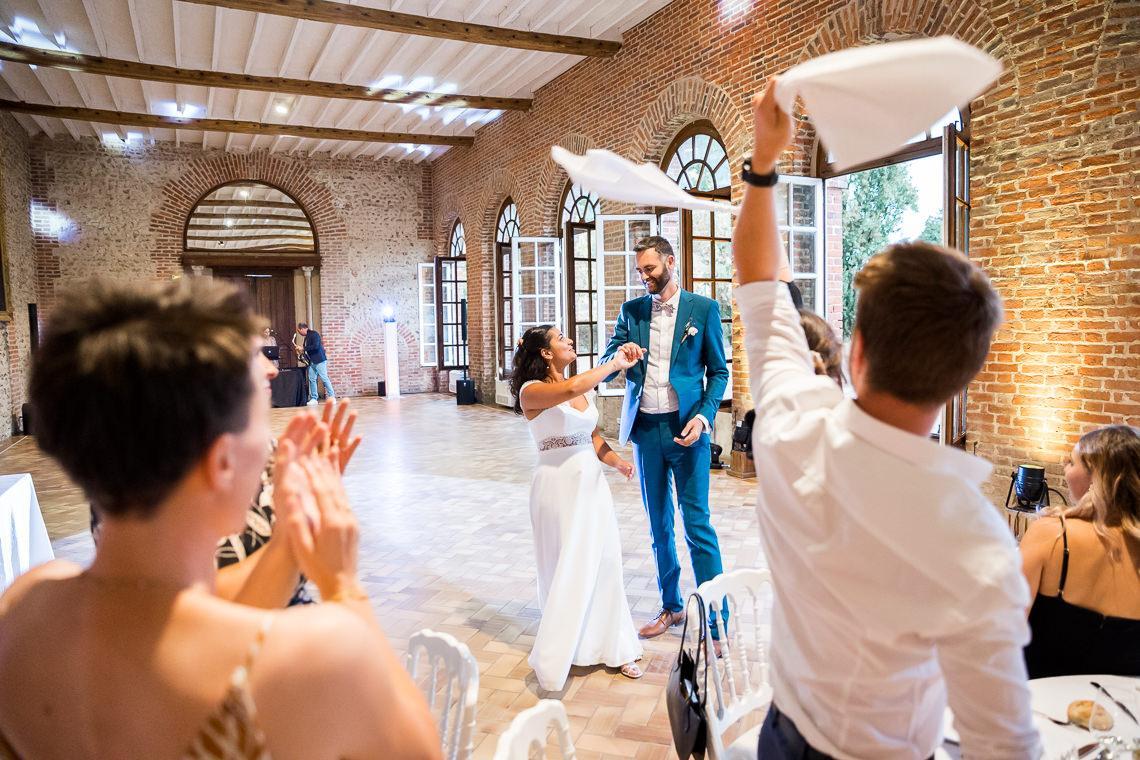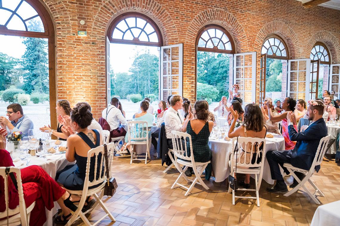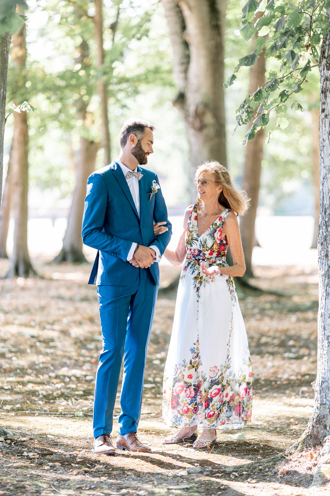 Après la cérémonie, les invités ont pu profiter d’un cocktail en extérieur, dans la cour du château. Les sourires, les rires et les éclats de voix ont animé cette belle journée de mariage.