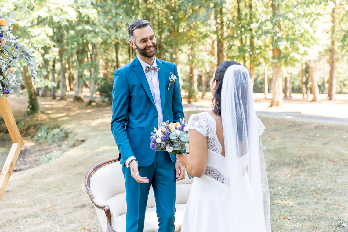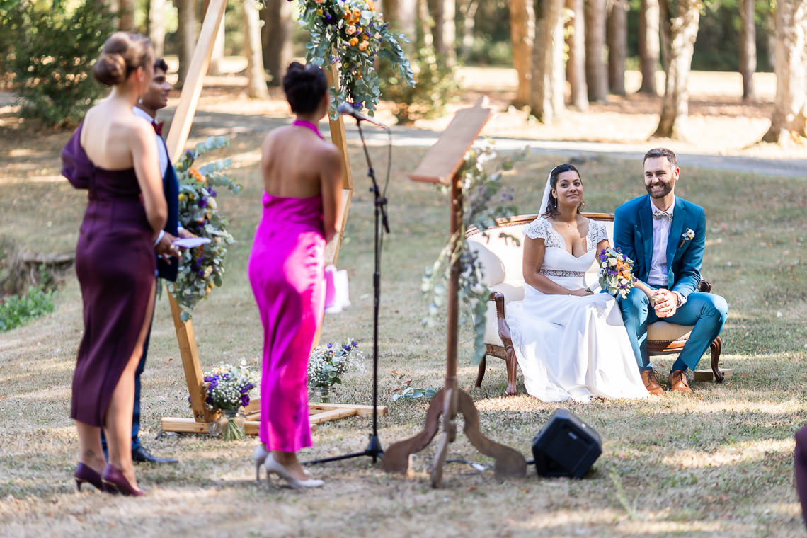 La journée a commencé tôt pour moi, avec la prise de photos des préparatifs de la mariée et du marié. J’ai pu saisir de merveilleux moments de complicité, de tendresse et de stress aussi. Mais tout cela n’était que le prélude à la magnifique cérémonie laïque qui allait suivre.