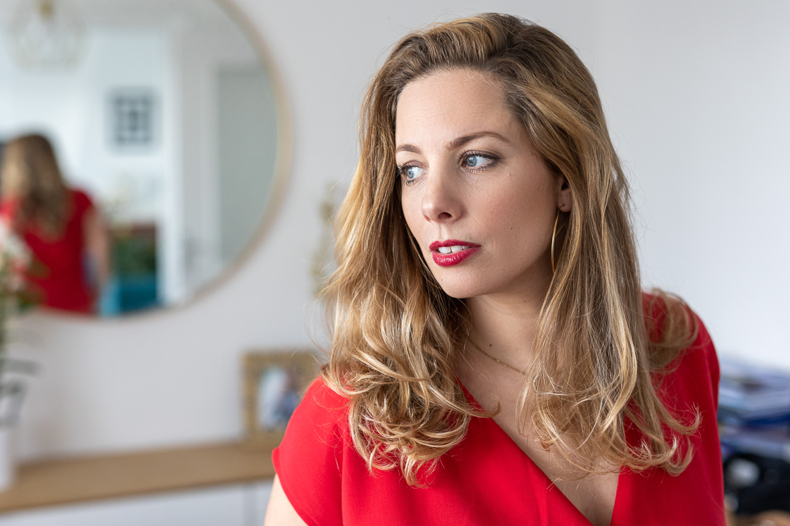 Du coup, c’était plutôt limpide pour moi lorsque je suis arrivée chez elle puisque je savais ce que je devais faire. D’ailleurs, je ne connaissais pas les lieux car elle avait déménagé entre temps. J’ai donc dû m’adapter à ce nouvel environnement. Heureusement, c’était assez facile de trouver de beaux endroits pour la faire poser car Sabrina est quelqu’un qui a du goût en matière de décoration d’intérieur. De plus, la lumière était au rendez-vous alors il n’y avait plus qu’à !
